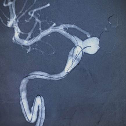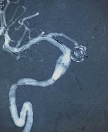 Aneurisma na artéria Carótida Interna Direita, medindo 9mm x 10mm