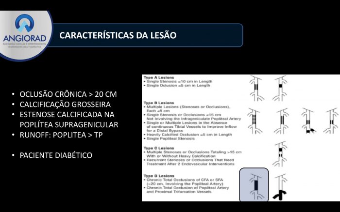 A doença arterial obstrutiva periférica (DAOP) é um grave problema de saúde pública que tem afetado de forma impactante na qualidade de vida dos pacientes com alta taxa de amputações maiores para os casos complexos. Avanços significativos no tratamento da DAOP tem sido construído com o desenvolvimento de novas tecnologias para revascularização das lesões alvo.